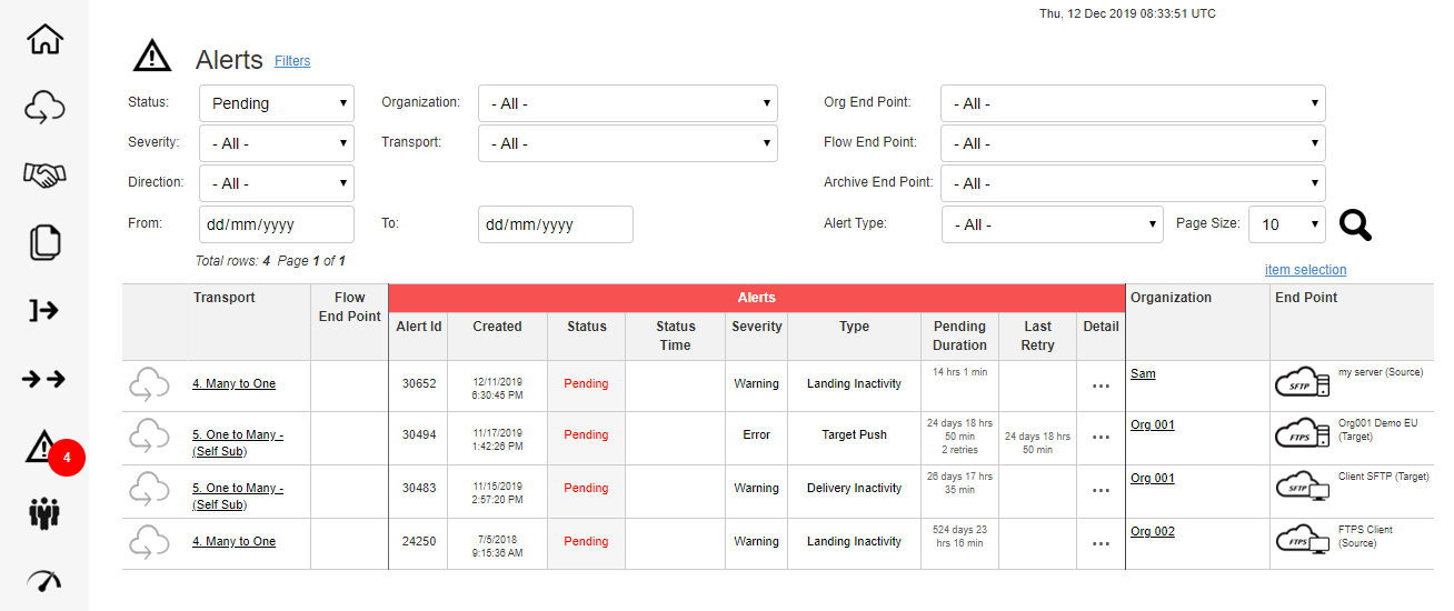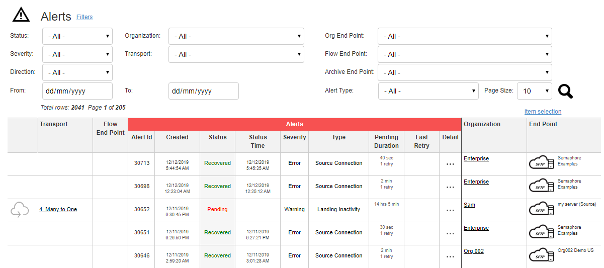 Alert Details and Links to related Organizations are accessible via the Alert Dashboard.
