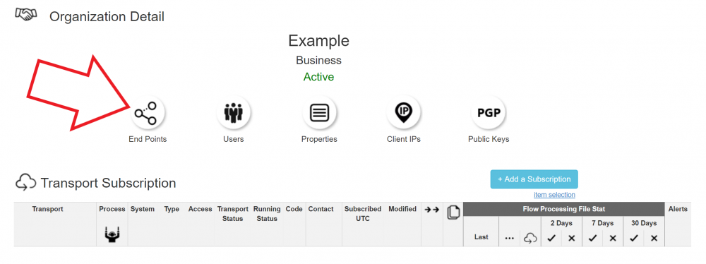 An Organization can configure Endpoints by clicking on the End Points icon.