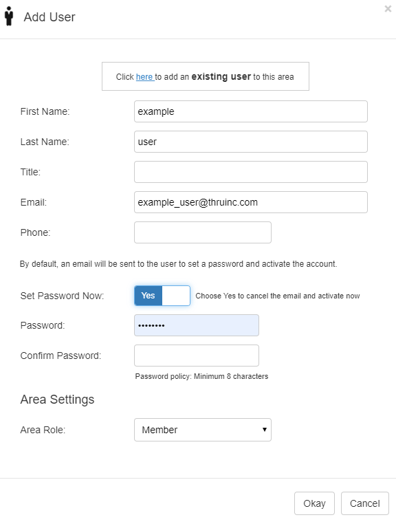 Also existing users can also be added to an area.