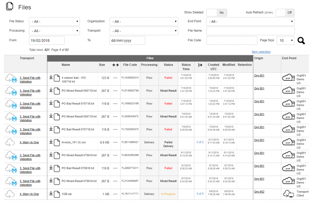 Show Deleted – allows the user to view deleted or archived files