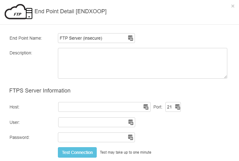 - End Point Name – Give this FTP source a name to help you identify what process this source is a part of