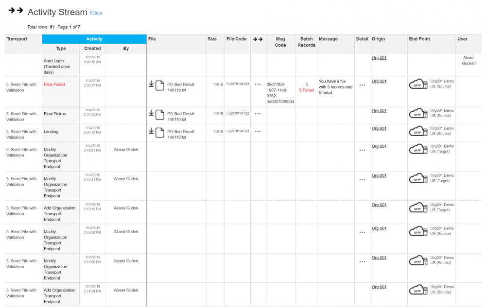 The Activity Stream supports field by field logging for the Organization, Transport and Endpoint properties.