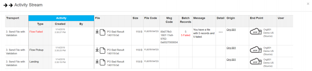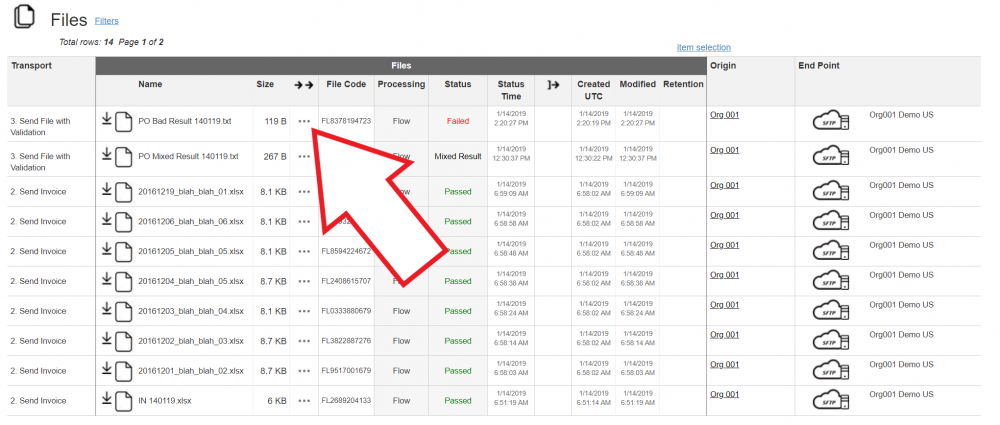 Click on the ellipsis in the Files column from the Organization Dashboard to drill into a detailed listing of all file activity.