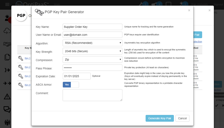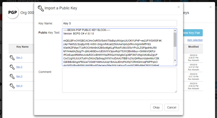 - Note that the system allows you to enter bogus key text so you can only manage key names if you want to or test the process with dummy keys.