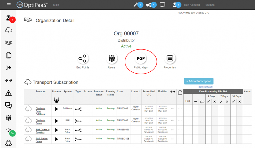 Thru provides an easy way to hand over organization public keys to sources participating in a transport.