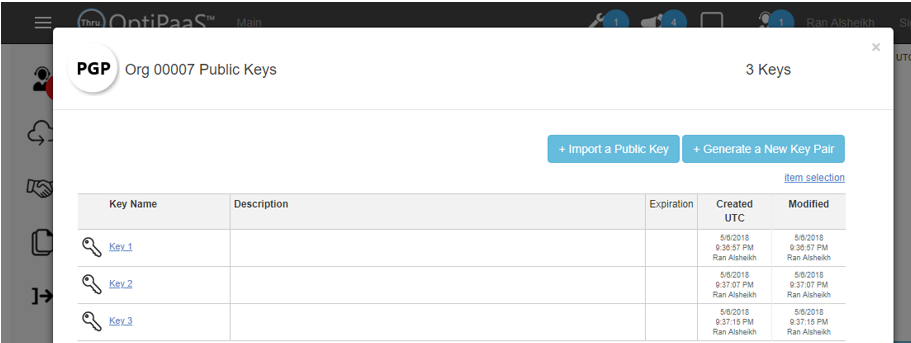 Click on PGP icon to see the key list.