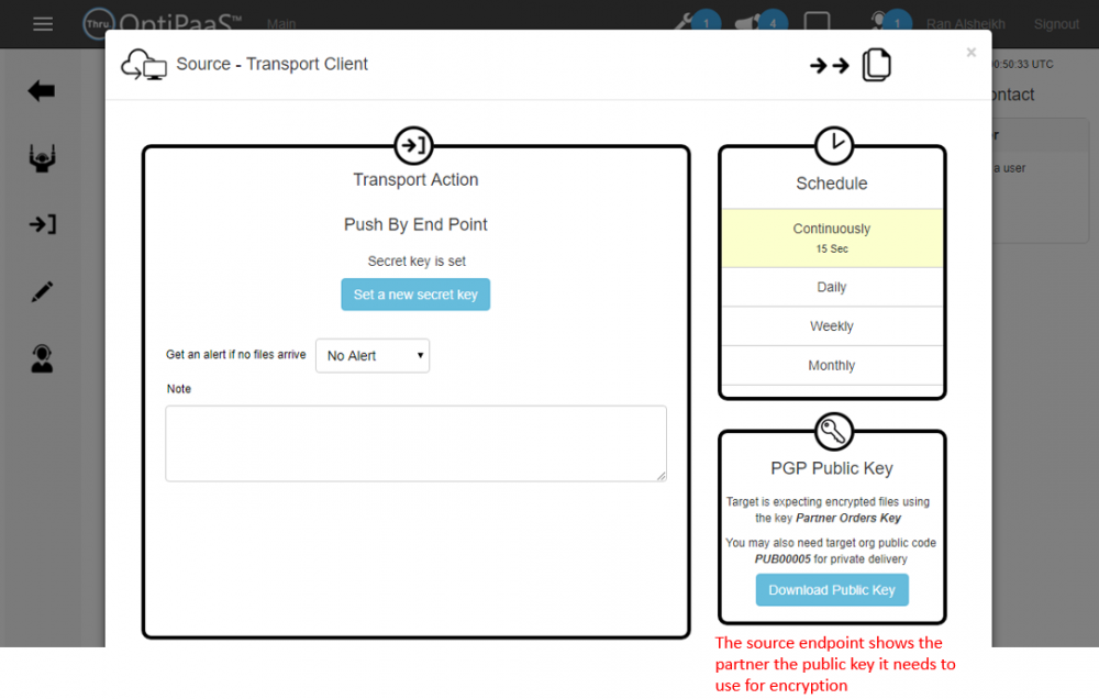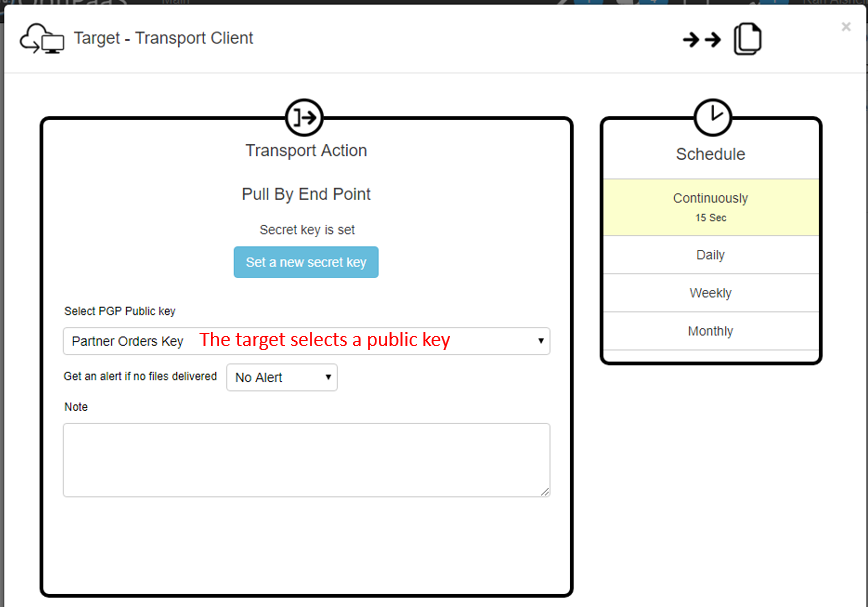 We will now set the endpoint to receive files and select the PGP public key to share with the sources.