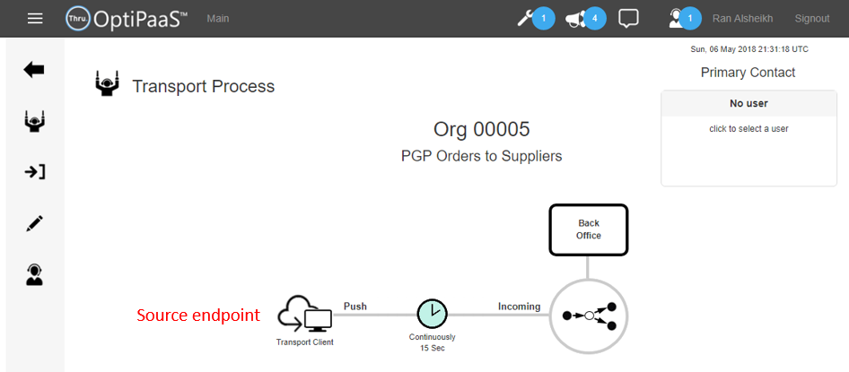 In this example we decided that Org 05 will use the Transport Client Tool to push files using Thru API.
