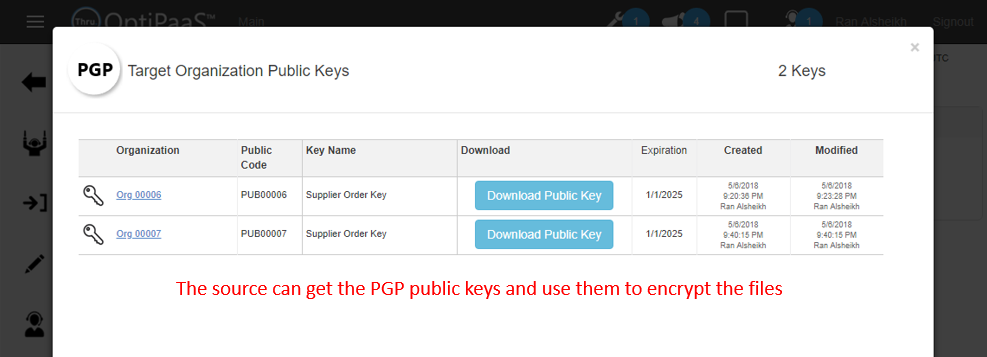 Click on view targets link to see the target organizations and get the public keys for encryption.