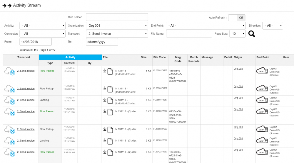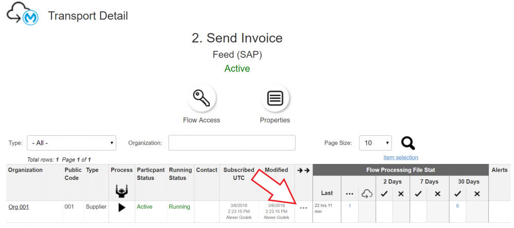Click on the Transport column link to access detailed Transport information and drillable activity functionality.