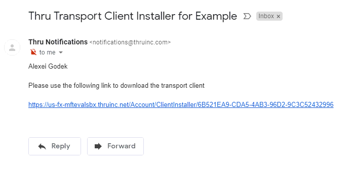 The recipient will receive the following email with a link to the installer