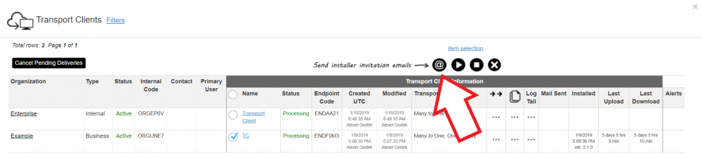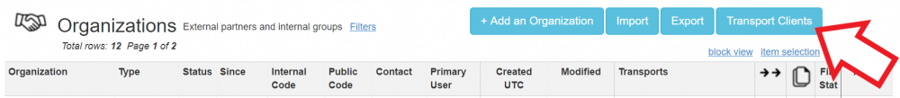 From the Organization Dashboard, you can get access to the Transport Clients view.